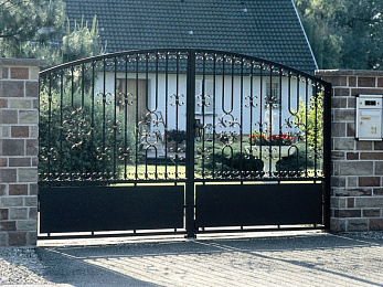 Элементы ковки служат украшением фасадов зданий и прилегающих к ним территорий. Мы готовы предложить самые разнообразные и неординарные композиции ворот и других изделий. Ворота для загородного дома или ворота для дачи, заглушенная нижняя часть ворот хорошо защитят участок от проникновения животных.