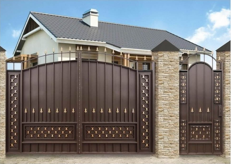 Строго снаружи - надежно внутри! Приобретая такие ворота, Вы получаете надежную защиту периметра, обеспечиваете красивый внешний вид. Заднюю обшивку ворот можно исполнить в различных цветах и придать ей фактурность. В качестве обшивки также можно использовать дерево или пластик.