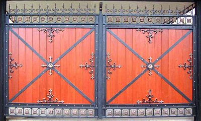 Элементы художественной ковки служат украшением фасадов зданий и прилегающих к ним территорий. Мы готовы предложить самые разнообразные и неординарные композиции ворот и других изделий.    Кованые изделия являются не только украшением дома или участка , но и выполняют функцию защиты и обеспечения безопасности жильцов. Художественная ковка в сочетании с натуральным деревом превращают любые распашные ворота в образец изящества и хорошего вкуса владельца ворот. Помимо дерева, наша компания готова предложить вам сочетание художественной ковки с профнастилом, сайдингом, сотовым и монолитным поликарбонатом, а также другими материалами по вашему запросу.