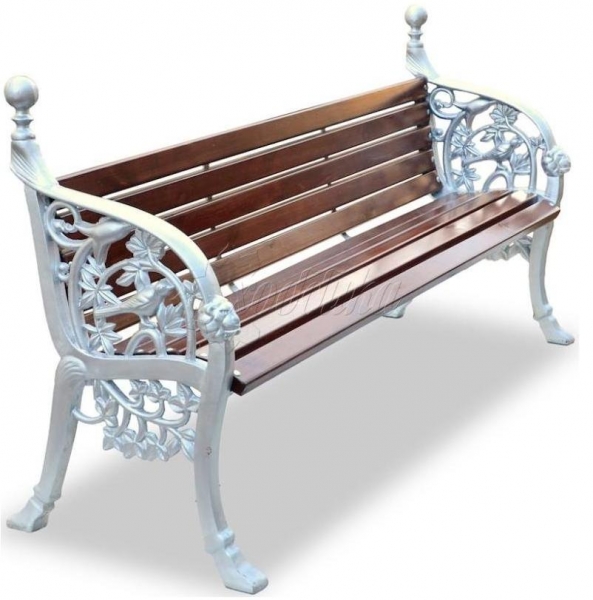 Скамейка "Соловей" с опорами из художественного алюминиевого литья и сидушки из лиственницы создана по эскизам старинных парковых скамеек. Данная скамейка воплощает собой элегантность и изящество. Легкий вес скамейки позволит легко перемещать ее по вашему саду.