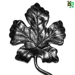 Лист виноградный большой, литой, сталь, хвостик д=8мм. Применяется в комплексе с кованым виноградом. Используется в растительном орнаменте кованых лестничных ограждений, ворот, заборов, панно и других изделиях.