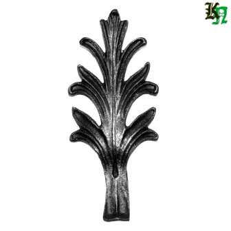 Лист литье, сталь. Может быть использован в изделиях художественной ковки: лестничных ограждениях, решетках, воротах. Часто используется вместе с листьями арт. 1300D/S, 1308D/S, 1307D/S