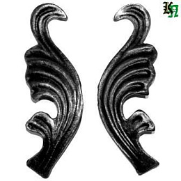 Литые листья, сталь. Широко используется в кованых изделиях с растительным орнаментом - лестничных ограждениях, кроватях, воротах и заборах, решетках.