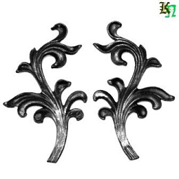 Литые листья, стальные, двусторонние. Широко используется в кованых изделиях с растительным орнаментом - лестничных ограждениях, кроватях, воротах и заборах, кованых решетках.