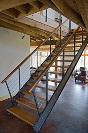 Металлическое ограждение для лестницы с деревянным поручнем в #REGION_NAME_DECLINE_PP#.