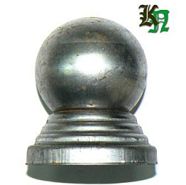 Навершие сталь, штамповка. Способ крепления - электросварка, газосварка, полуавтомат. Используется при изготовлении кованых ограждений, на начальный столб лестничных перил, на кованых кроватях и других изделиях.