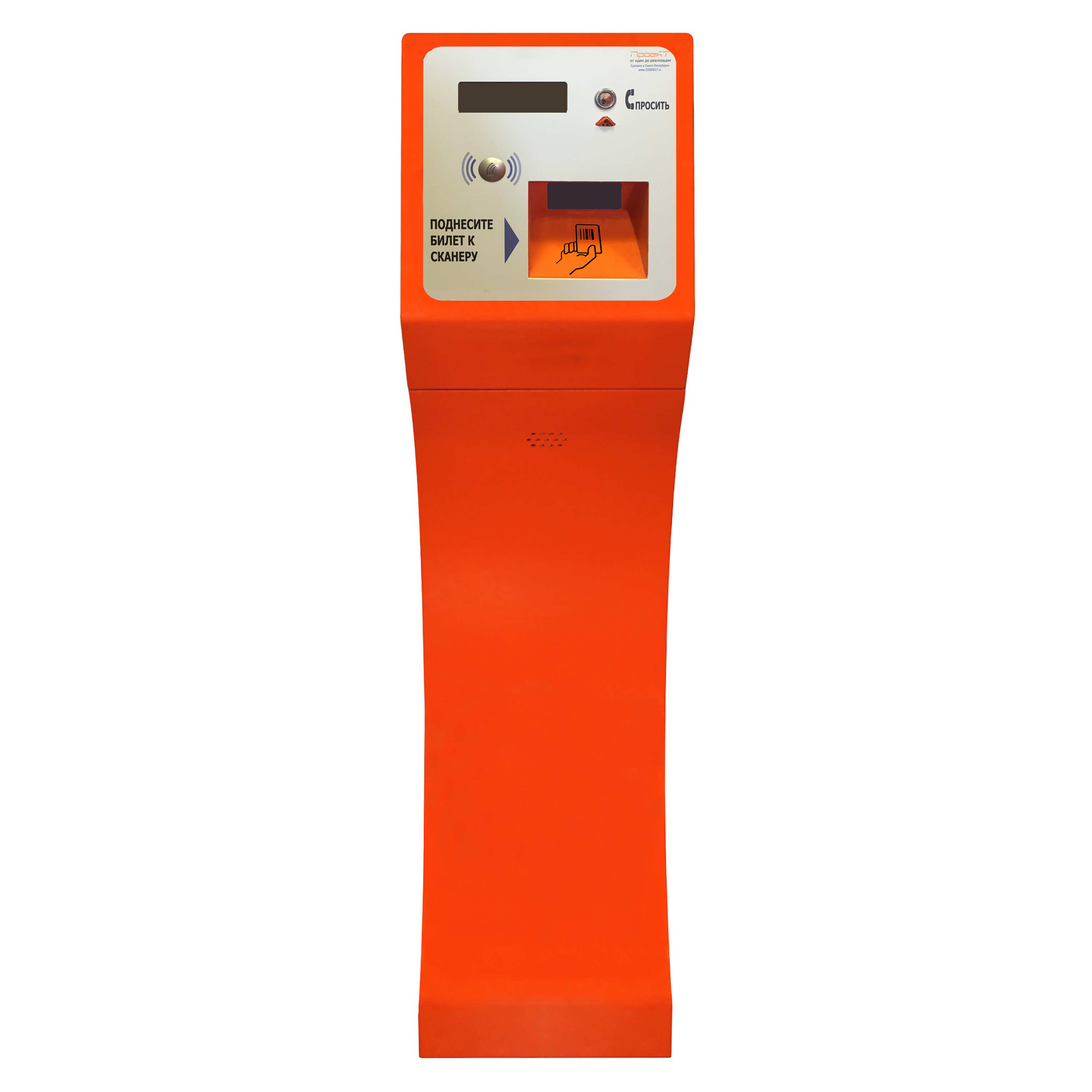 | Пользовательский интерфейс: | монитор для информирования клиента; считыватель штрих-кода для разового билета; считыватель карт постоянного клиента; переговорное устройство (для связи с оператором) |