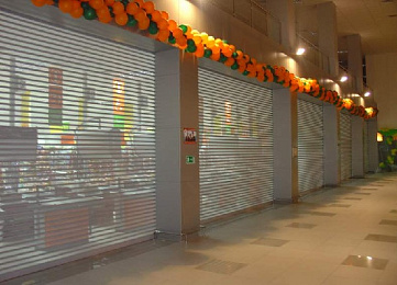 Наши рольставни очень просты в использовании и вместе с тем надежны и долговечны.Всего лишь один поворот ключа,нажатие кнопки,и в течение нескольких секунд торговый павильон готов к приему посетителей.
