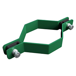 Система крепления. Специальная конструкция позволяет упростить монтаж систем ограждений и повысить их взломоустойчивость. Все элементы изготавливаются методом штамповки из горячекатаного листа с последующим цинкованием и порошковой покраской.Арт.STZ-7030KIT/AV/RAL6005 Комплект хомута двухстороннего 70 (антивандальный)