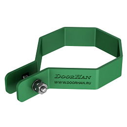Система крепления. Специальная конструкция позволяет упростить монтаж систем ограждений и повысить их взломоустойчивость. Все элементы изготавливаются методом штамповки из горячекатаного листа с последующим цинкованием и порошковой покраской.Арт.STZ-7031KIT/RAL6005 Комплект хомута одностороннего 70 (для концевых столбов)