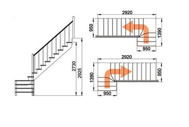 Высота от пола нижнего этажа до пола верхнего этажа: 2925 мм