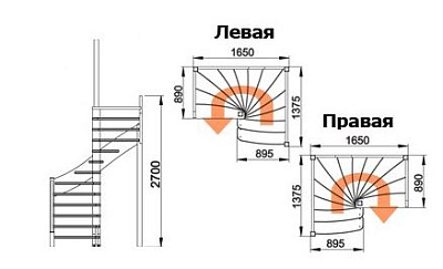Лестница Высота от пола нижнего этажа до пола верхнего этажа: 2700 мм